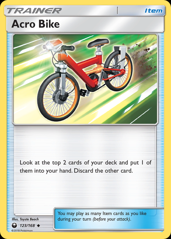 Home / Celestial Storm / sm7Trainer / Acro Bike (Reverse Holo) Acro Bike (Reverse Holo)R22.50 1 in stock Acro Bike (Reverse Holo) quantity Add to basket SKU: sm7-123-RH Categories: Celestial Storm, sm7Trainer, sm7Uncommon Description Description Look at the top 2 cards of your deck and put 1 of them into your hand. Discard the other card. Related products Mudkip R3.00 Add to basket Mudkip R8.00 Add to basket Wailmer R3.00 Add to basket Magcargo R20.00 Add to basket