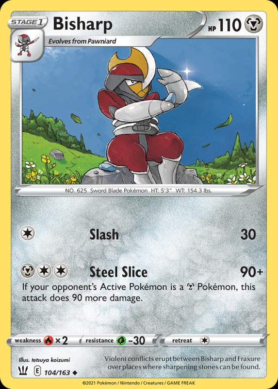 Home / Battle Styles / swsh5Colorless / Bisharp BisharpR7.50 1 in stock Bisharp quantity Add to basket SKU: swsh5-104 Categories: Battle Styles, swsh5Colorless, swsh5Pokémon, swsh5Uncommon Description Description FlavorText : Violent conflicts erupt between Bisharp and Fraxure over places where sharpening stones can be found. Related products Fomantis R3.00 Add to basket Remoraid R3.00 Add to basket Centiskorch (Reverse Holo) R12.50 Add to basket Purugly (Reverse Holo) R10.00 Add to basket