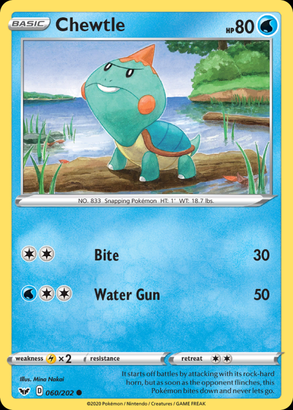 Home / Sword & Shield / swsh1Colorless / Chewtle ChewtleR3.00 2 in stock Chewtle quantity Add to basket SKU: swsh1-60 Categories: Sword & Shield, swsh1Colorless, swsh1Common, swsh1Pokémon Description Description FlavorText : It starts off battles by attacking with its rock-hard horn, but as soon as the opponent flinches, this Pokémon bites down and never lets go. Related products Great Ball R15.00 Add to basket Energy Retrieval R8.00 Add to basket Bede (Reverse Holo) R10.00 Add to basket Energy Switch (Reverse Holo) R20.00 Add to basket