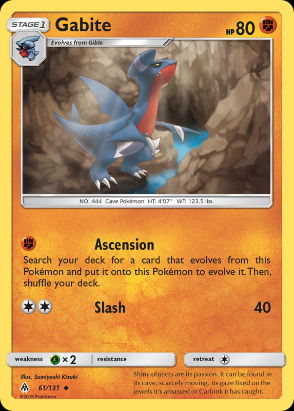 Home / Forbidden Light / sm6Fighting / Gabite GabiteR10.00 3 in stock Gabite quantity Add to basket SKU: sm6-61 Categories: Forbidden Light, sm6Fighting, sm6Pokémon, sm6Uncommon Description Description FlavorText : Shiny objects are its passion. It can be found in its cave, scarcely moving, its gaze fixed on the jewels it’s amassed or Carbink it has caught. Related products Fennekin R3.00 Add to basket Scatterbug (Reverse Holo) R5.00 Add to basket Spewpa R7.50 Add to basket Bunnelby (Reverse Holo) R8.00 Add to basket
