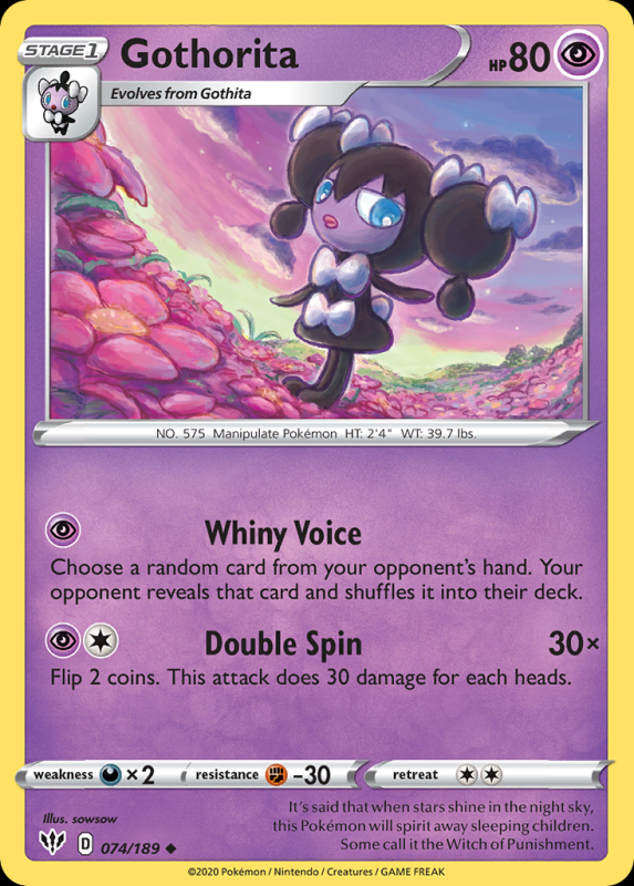 Home / Darkness Ablaze / swsh3Pokémon / Gothorita GothoritaR7.50 3 in stock Gothorita quantity Add to basket SKU: swsh3-74 Categories: Darkness Ablaze, swsh3Pokémon, swsh3Psychic, swsh3Uncommon Description Description FlavorText : It’s said that when stars shine in the night sky, this Pokémon will spirit away sleeping children. Some call it the Witch of Punishment. Related products Cubchoo R3.00 Add to basket Larvitar R3.00 Add to basket Snubbull R3.00 Add to basket Simipour R4.50 Add to basket