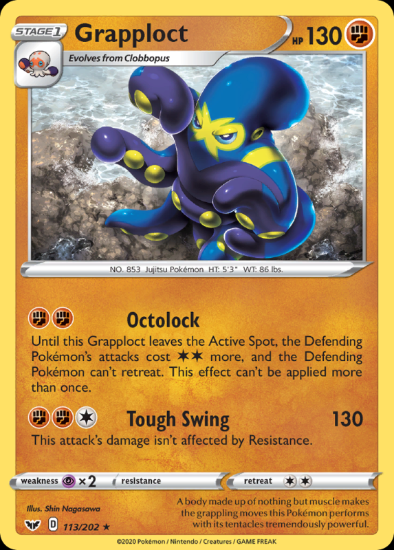 Home / Sword & Shield / swsh1Fighting / Grapploct GrapploctR7.50 1 in stock Grapploct quantity Add to basket SKU: swsh1-113 Categories: Sword & Shield, swsh1Fighting, swsh1Pokémon, swsh1Rare Description Description FlavorText : A body made up of nothing but muscle makes the grappling moves this Pokémon performs with its tentacles tremendously powerful. Related products Hop R7.50 Add to basket Aurora Energy R10.00 Add to basket Metal Saucer R12.50 Add to basket Poké Kid R10.00 Add to basket