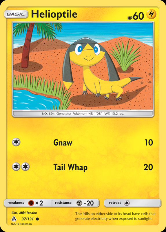 Home / Forbidden Light / sm6Colorless / Helioptile HelioptileR3.00 8 in stock Helioptile quantity Add to basket SKU: sm6-37 Categories: Forbidden Light, sm6Colorless, sm6Common, sm6Pokémon Description Description FlavorText : The frills on either side of its head have cells that generate electricity when exposed to sunlight. Related products Spewpa R7.50 Add to basket Braixen R10.00 Add to basket Litleo R3.00 Add to basket Snover R3.00 Add to basket