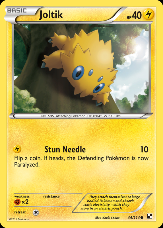 Home / Black & White / bw1Pokémon / Joltik (44) Joltik (44)R8.00 1 in stock Joltik (44) quantity Add to basket SKU: bw1-44 Categories: Black & White, bw1Common, bw1Lightning, bw1Pokémon Description Description FlavorText : They attach themselves to large-bodied Pokémon and absorb static electricity, which they store in an electric pouch. Related products Poké Ball (Reverse Holo) R10.00 Add to basket Simisage (Reverse Holo) R10.00 Add to basket Sandile (Reverse Holo) R12.50 Add to basket Solosis (Reverse Holo) R10.00 Add to basket