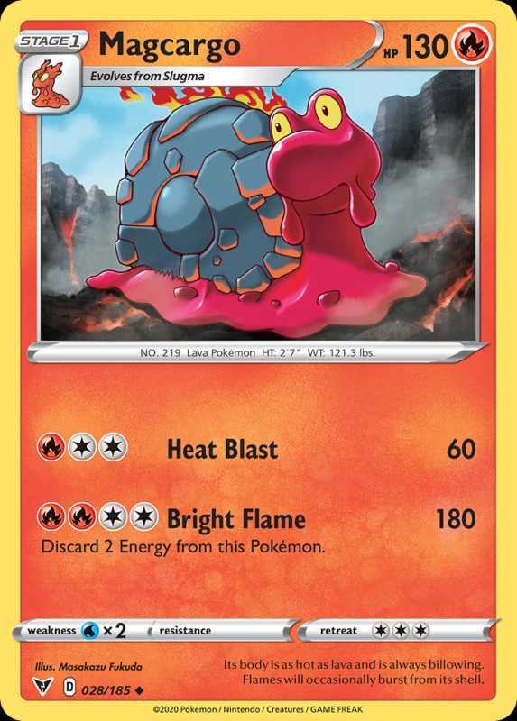 Home / Vivid Voltage / swsh4Colorless / Magcargo MagcargoR7.50 4 in stock Magcargo quantity Add to basket SKU: swsh4-28 Categories: swsh4Colorless, swsh4Pokémon, swsh4Uncommon, Vivid Voltage Description Description FlavorText : Its body is as hot as lava and is always billowing. Flames will occasionally burst from its shell. Related products Duskull R3.00 Add to basket Dewott R7.50 Add to basket Blitzle R3.00 Add to basket Zebstrika (Reverse Holo) R10.00 Add to basket