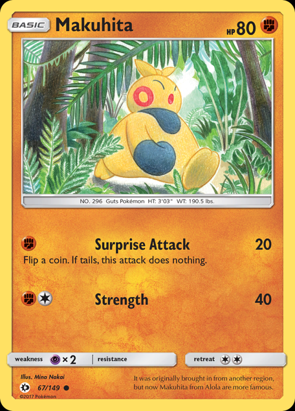 Home / Sun & Moon / sm1Common / Makuhita MakuhitaR3.00 77 in stock Makuhita quantity Add to basket SKU: sm1-67 Categories: sm1Common, sm1Fighting, sm1Pokémon, Sun & Moon Description Description FlavorText : It was originally brought in from another region, but now Makuhita from Alola are more famous. Related products Alolan Persian (Reverse Holo) R12.50 Add to basket Alolan Diglett (Reverse Holo) R5.00 Add to basket Bewear (Reverse Holo) R12.50 Add to basket Pyukumuku (Reverse Holo) R12.50 Add to basket