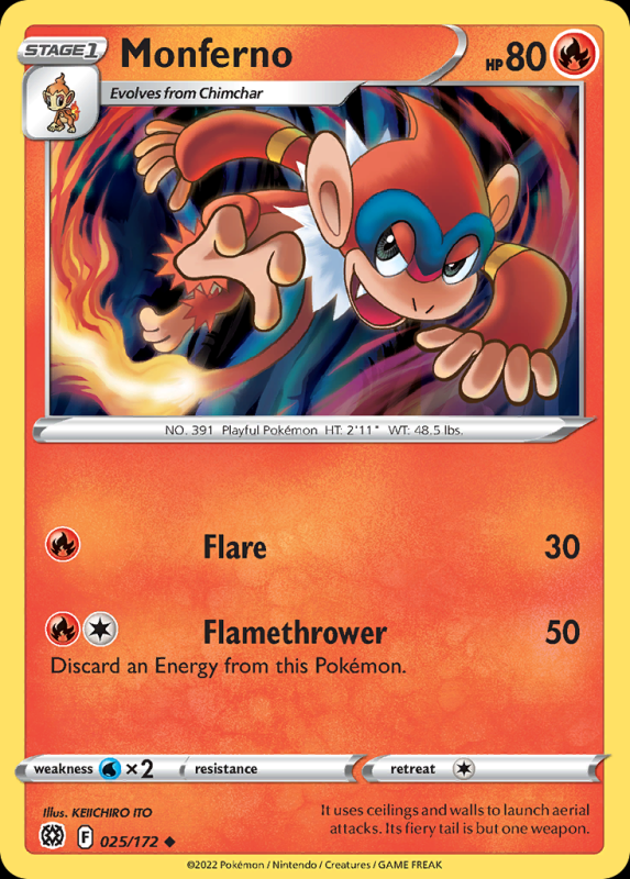 Home / Brilliant Stars / swsh9Fire / Monferno MonfernoR8.00 1 in stock Monferno quantity Add to basket SKU: swsh9-25 Categories: Brilliant Stars, swsh9Fire, swsh9Pokémon, swsh9Uncommon Description Description FlavorText : It uses ceilings and walls to launch aerial attacks. Its fiery tail is but one weapon. Related products Magmar R5.00 Add to basket Clefairy R5.00 Add to basket Buizel R5.00 Add to basket Cubchoo R5.00 Add to basket
