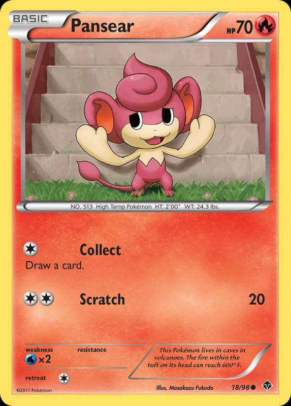 Home / Emerging Powers / bw2Colorless / Pansear PansearR10.00 2 in stock Pansear quantity Add to basket SKU: bw2-18 Categories: bw2Colorless, bw2Common, bw2Pokémon, Emerging Powers Description Description FlavorText : This Pokémon lives in caves in volcanoes. The fire within the tuft on its head can reach 600º F. Related products Deerling R10.00 Add to basket Pansage R10.00 Add to basket Emolga R12.50 Add to basket Basculin R10.00 Add to basket
