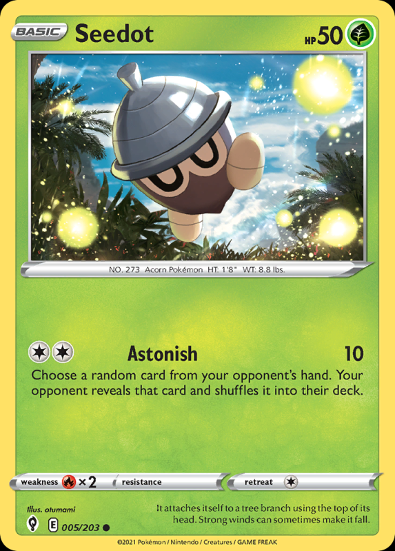 Home / Evolving Skies / swsh7Colorless / Seedot SeedotR3.00 1 in stock Seedot quantity Add to basket SKU: swsh7-5 Categories: Evolving Skies, swsh7Colorless, swsh7Common, swsh7Pokémon Description Description FlavorText : It attaches itself to a tree branch using the top of its head. Strong winds can sometimes make it fall. Related products Tentacool R3.00 Add to basket Sharpedo R7.50 Add to basket Psyduck R3.00 Add to basket Cryogonal R3.00 Add to basket