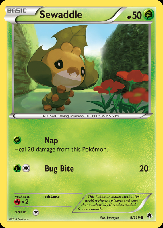 FlavorText :This Pokémon makes clothes for itself. It chews up leaves and sews them with sticky thread extruded from its mouth.