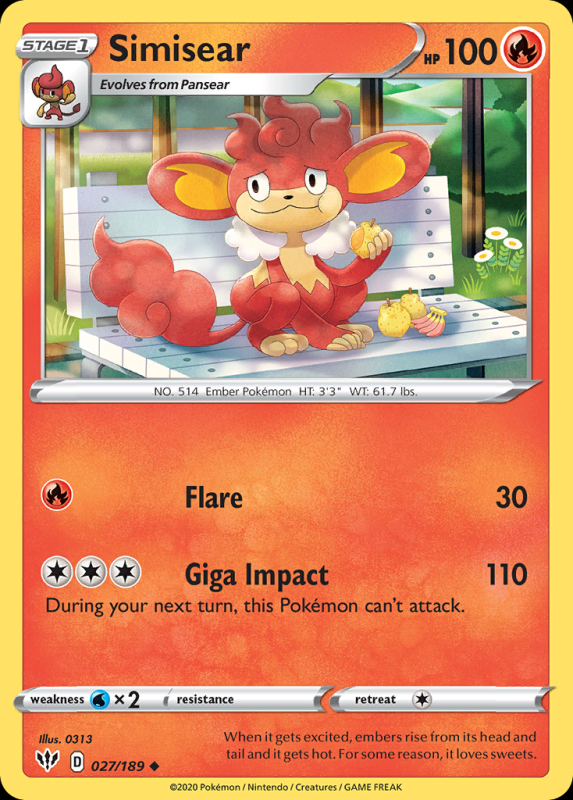 Home / Darkness Ablaze / swsh3Fire / Simisear SimisearR4.50 1 in stock Simisear quantity Add to basket SKU: swsh3-27 Categories: Darkness Ablaze, swsh3Fire, swsh3Pokémon, swsh3Uncommon Description Description FlavorText : When it gets excited, embers rise from its head and tail and it gets hot. For some reason, it loves sweets. Related products Decidueye (Reverse Holo) R12.50 Add to basket Paras R3.00 Add to basket Dartrix R7.50 Add to basket Pansage R3.00 Add to basket