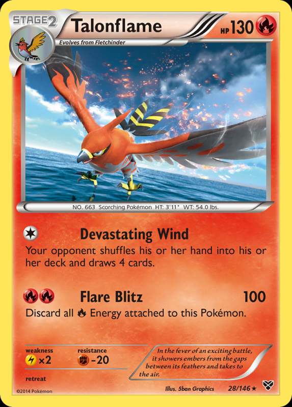 FlavorText :In the fever of an exciting battle, it showers embers from the gaps between its feathers and takes to the air.